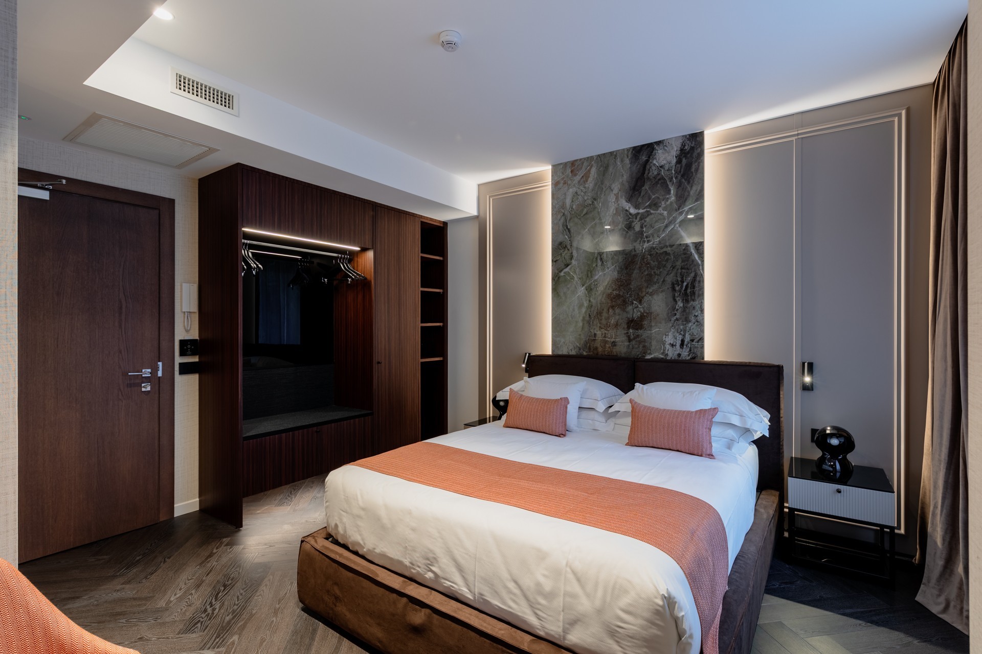 BM Italia è stata incaricata dal Duomo Hotel & Apartments di realizzare tutti gli elementi di arredo su misura. Per le nuove camere, il progetto è stato seguito dal Project Manager Flavio Quarenghi. Il Duomo Hotel and Apartments di Milano rappresenta l'equilibrio perfetto tra design contemporaneo ed eleganza nel cuore di Milano. Il concept dell'hotel, curato da Petra Hospitality, si basa sulla "The unconventional elegance hospitality", offrendo un'esperienza che va oltre il semplice pernottamento e abbraccia i valori dell'amore per il bello, del ben fatto e dell'eleganza.