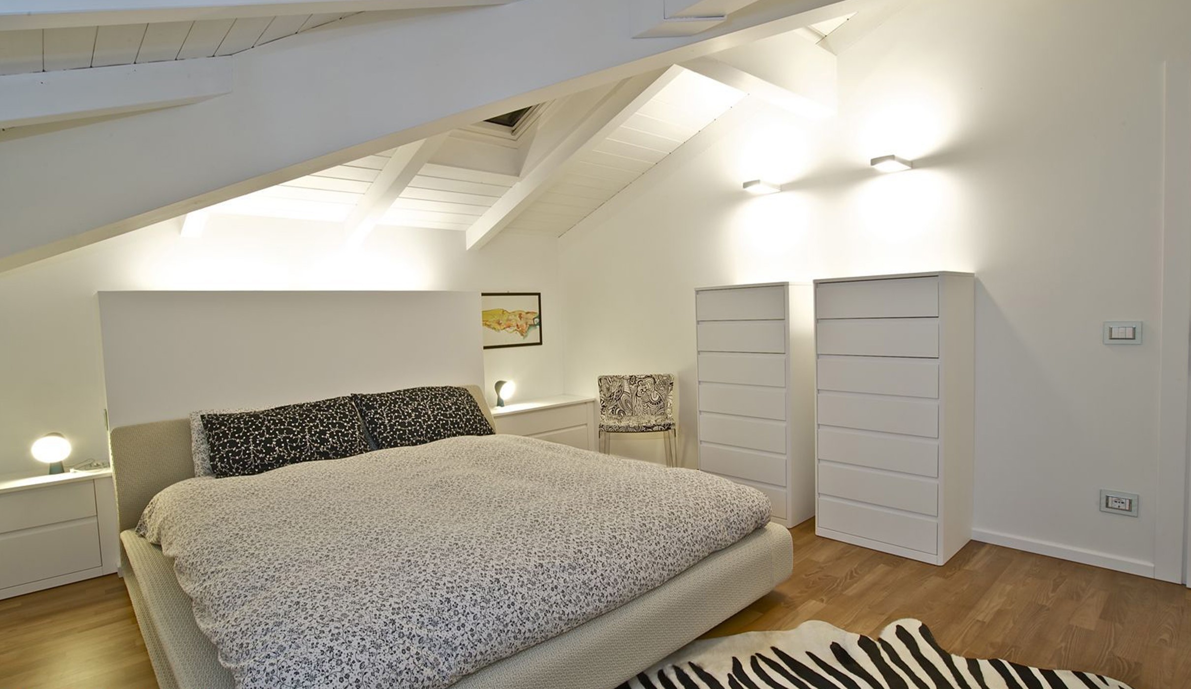 BM Italia ha realizzato l'arredamento di un attico mansardato dal progetto del designer Fabio Gianoli