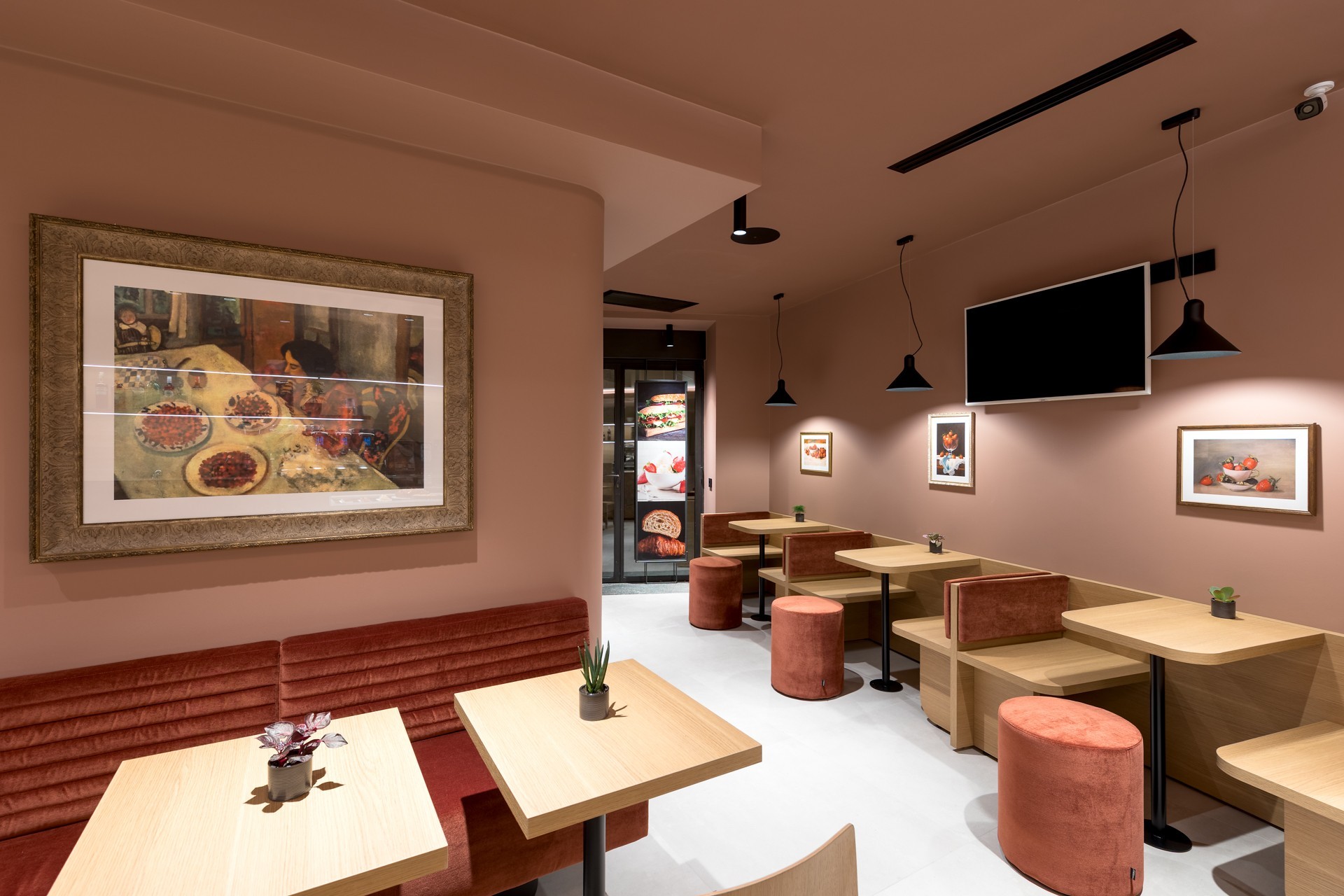 Per sottolineare questa connessione, i nuovi elementi d’arredo sono stati affiancati da riproduzioni di ritratti a tema "fragole".